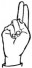 На ћирилици написано ДУШИЦА РАЛИЋ састоји се из 11 слова [?]. Исписано ћириличном једноручном азбуком за глувонеме: